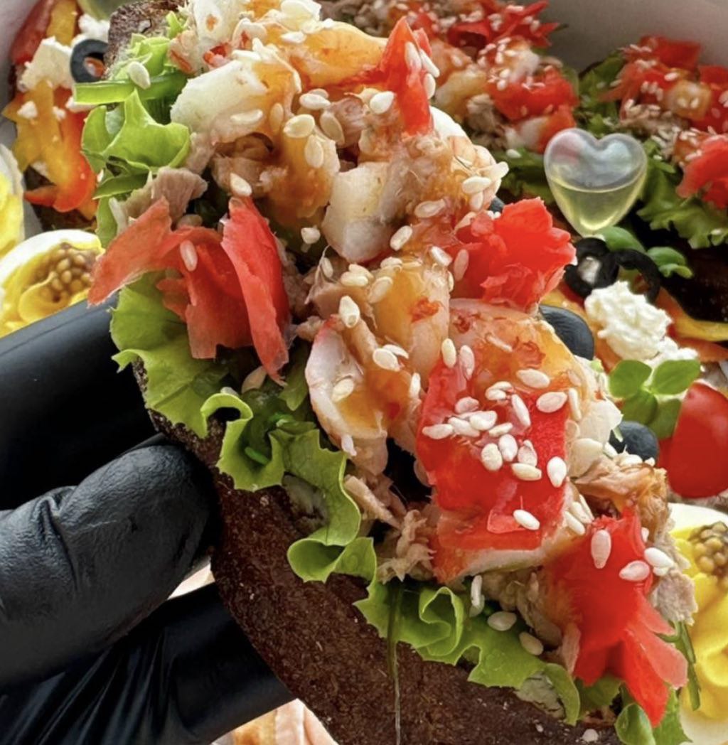 С семгой / форелью, огурцом на сливочном сыре