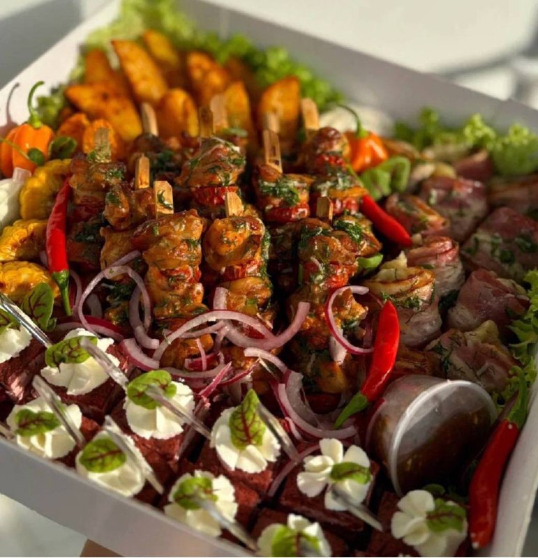 Шашлычок на шпажке из филе бедра с черри и перцем.