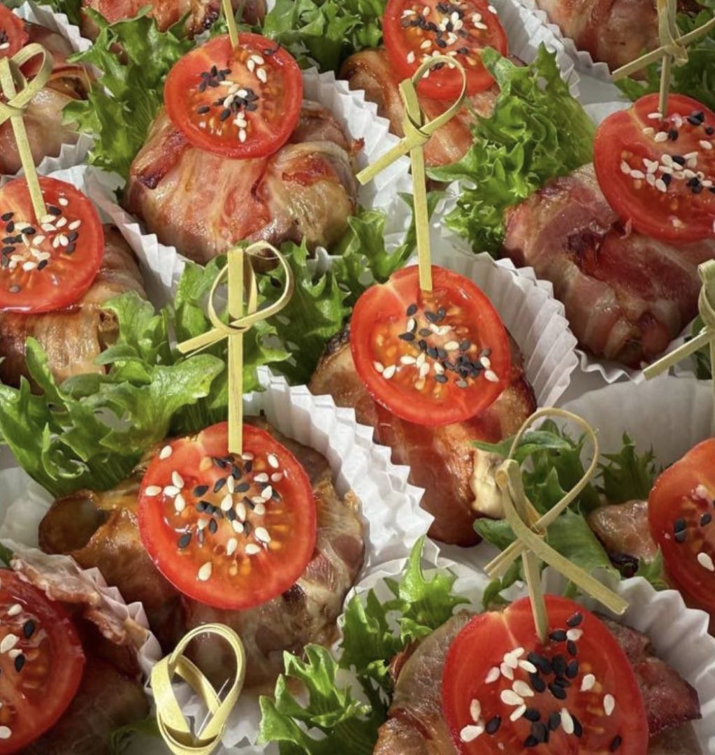 Запеченные шампиньоны, фаршированные сыром ы беконе - 20 шт.