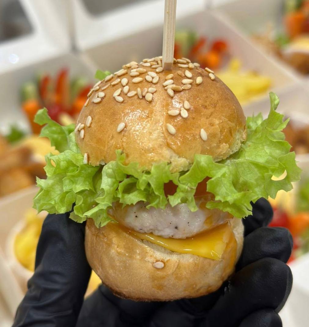 Мини-бургеры с куриной котлетой, сыром Чеддер и авторским соусом - 14 шт.